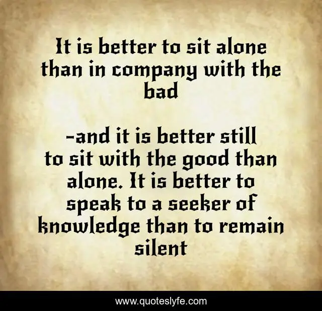 "and it is better still to sit with the good than alone. It is better to speak to a seeker of knowledge than to remain silent Quotes." Quoteslyfe.com, 2025. Mon. 08 Dec. 2025. <https://www.quoteslyfe.com/quote/It-is-better-to-sit-alone-than-104311>.