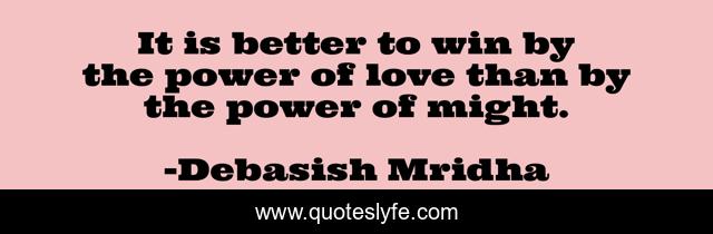 This page presents the quote "It is better to win by the power of love than by the power of might.". Author of this quote is Debasish Mridha. This quote is about life, love, knowledge, inspirational, intelligence, philosophy, wisdom, quotes, affection,.