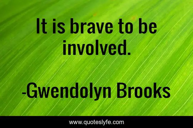 "Gwendolyn Brooks Quotes." Quoteslyfe.com, 2025. Mon. 08 Dec. 2025. <https://www.quoteslyfe.com/quote/It-is-brave-to-be-involved-262365>.
