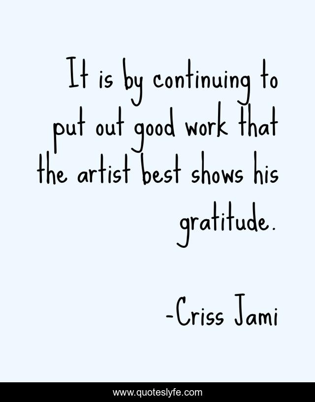This page presents the quote "It is by continuing to put out good work that the artist best shows his gratitude.". Author of this quote is Criss Jami. This quote is about gratitude, work, art, supporters, artist, musician, good-work, appreciation, fans,.