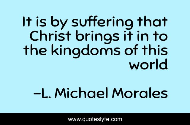 This page presents the quote "It is by suffering that Christ brings it in to the kingdoms of this world". Author of this quote is L. Michael Morales. This quote is about discipleship, sovereignty-of-god, ministry,.