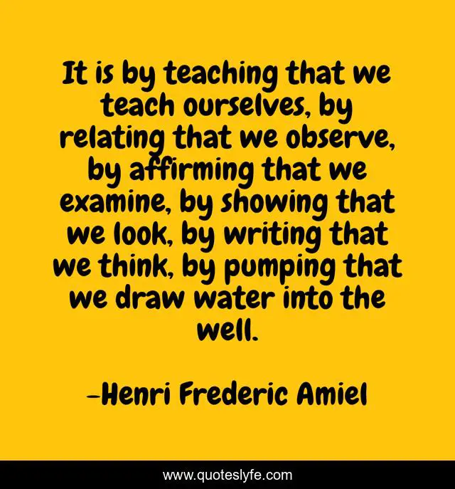 This page presents the quote "It is by teaching that we teach ourselves, by relating that we observe, by affirming that we examine, by showing that we look, by writing that we think, by pumping that we draw water into the well.". Author of this quote is Henri Frederic Amiel. This quote is about water, think, writing,.