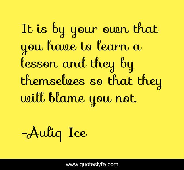 This page presents the quote "It is by your own that you have to learn a lesson and they by themselves so that they will blame you not.". Author of this quote is Auliq Ice. This quote is about mistakes, mistakes-we-make, life-lessons,.