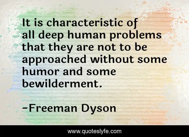 This page presents the quote "It is characteristic of all deep human problems that they are not to be approached without some humor and some bewilderment.". Author of this quote is Freeman Dyson. This quote is about problems, deep, human,.