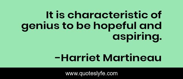 This page presents the quote "It is characteristic of genius to be hopeful and aspiring.". Author of this quote is Harriet Martineau. .