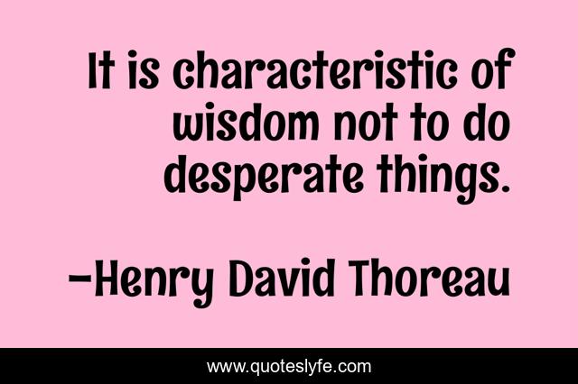 This page presents the quote "It is characteristic of wisdom not to do desperate things.". Author of this quote is Henry David Thoreau. .