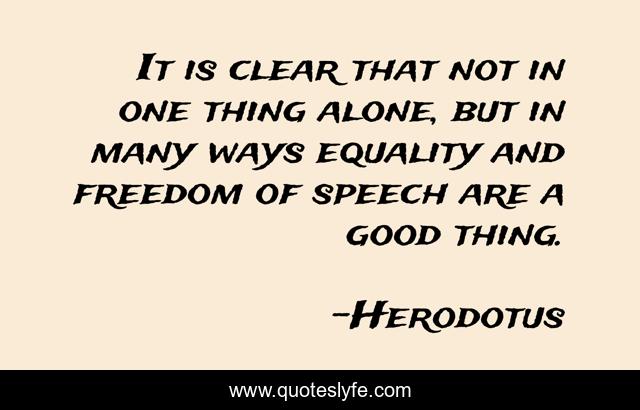 This page presents the quote "It is clear that not in one thing alone, but in many ways equality and freedom of speech are a good thing.". Author of this quote is Herodotus. This quote is about alone, freedom, good,.