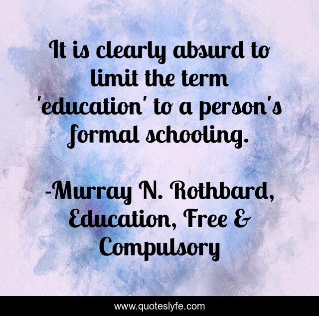 This page presents the quote "It is clearly absurd to limit the term 'education' to a person's formal schooling.". Author of this quote is Murray N. Rothbard, Education, Free & Compulsory. This quote is about school, education,.