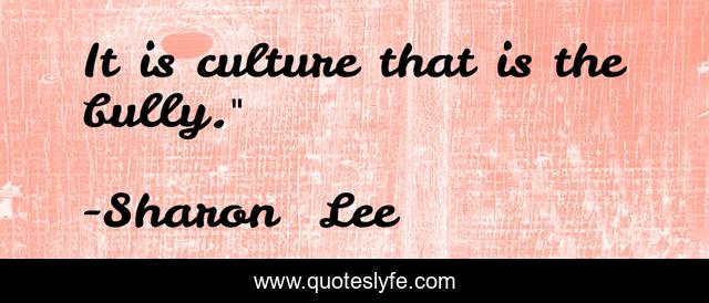This page presents the quote "It is culture that is the bully."". Author of this quote is Sharon Lee. This quote is about culture, philosophy, sociology,.