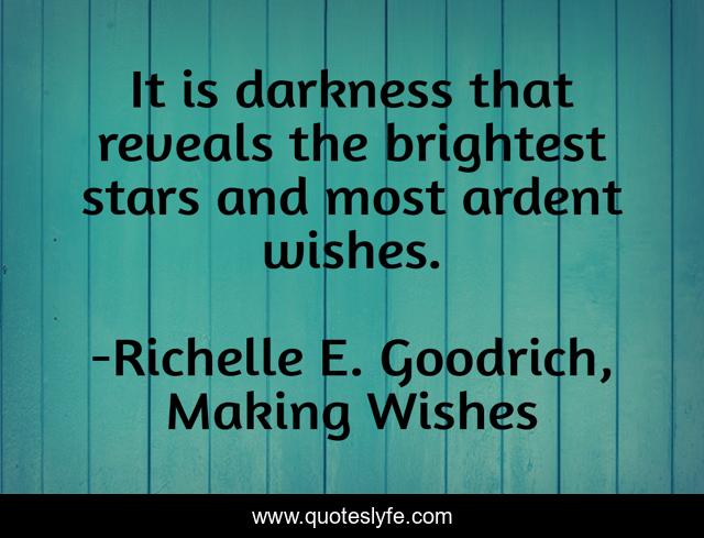 This page presents the quote "It is darkness that reveals the brightest stars and most ardent wishes.". Author of this quote is Richelle E. Goodrich, Making Wishes. This quote is about darkness, making-wishes, richelle-e-goodrich, wishes, richelle, stars, richelle-goodrich,.