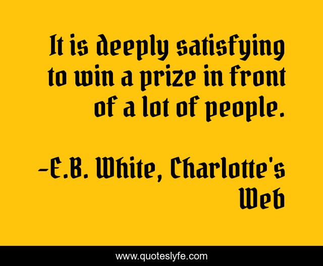 "E.B. White, Charlotte's Web Quotes." Quoteslyfe.com, 2025. Fri. 05 Dec. 2025. <https://www.quoteslyfe.com/quote/It-is-deeply-satisfying-to-win-a-249521>.