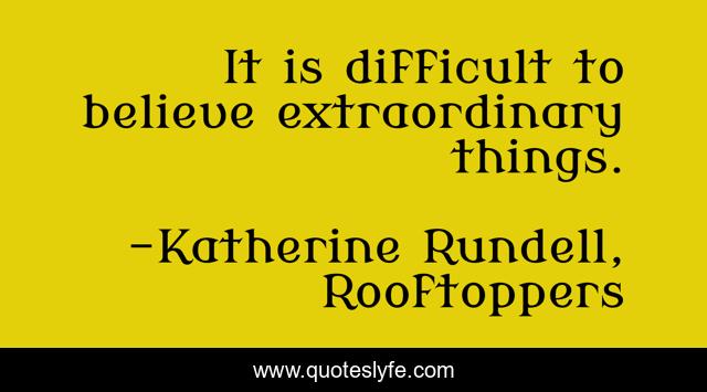 "Katherine Rundell, Rooftoppers Quotes." Quoteslyfe.com, 2025. Fri. 05 Dec. 2025. <https://www.quoteslyfe.com/quote/It-is-difficult-to-believe-extraordinary-things-111505>.
