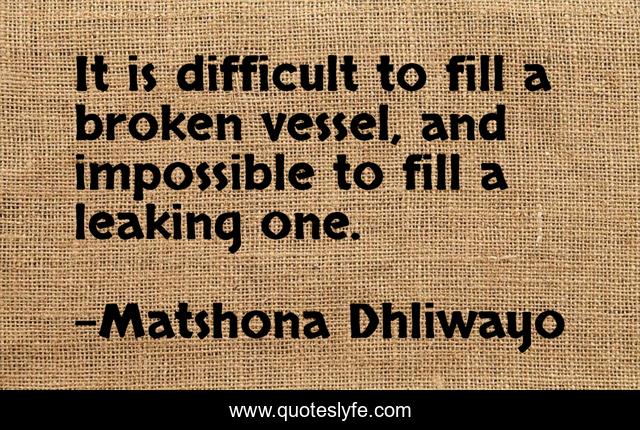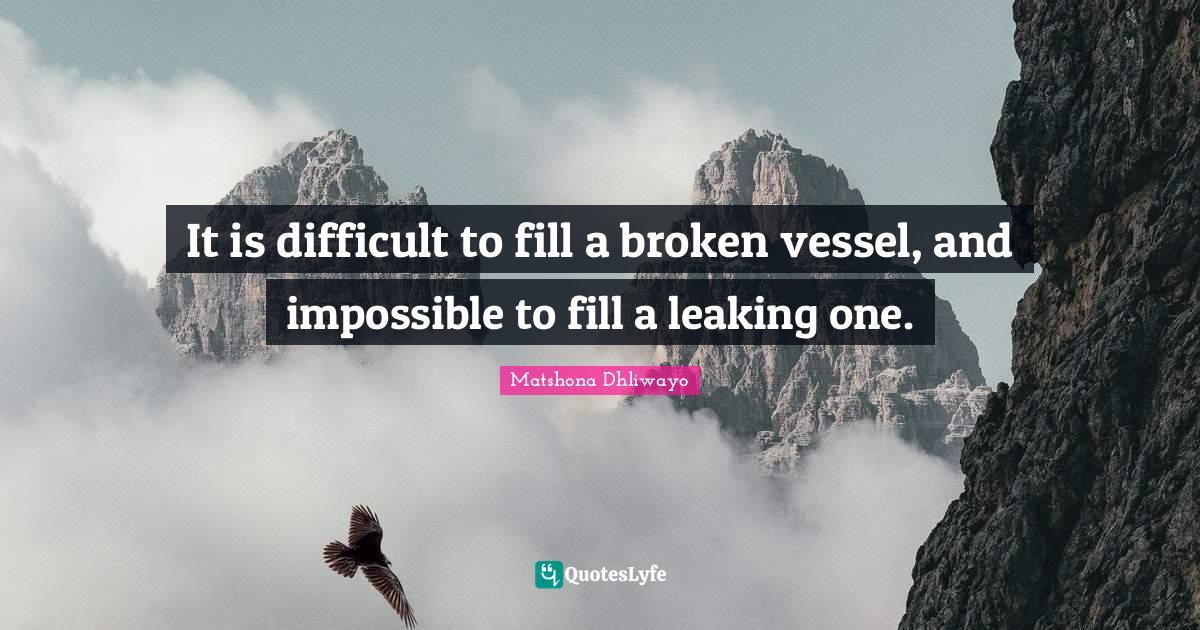 "Matshona Dhliwayo Quotes." Quoteslyfe.com, 2026. Thu. 19 Mar. 2026. <https://www.quoteslyfe.com/quote/It-is-difficult-to-fill-a-broken-97957>.