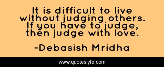 This page presents the quote "It is difficult to live without judging others. If you have to judge, then judge with love.". Author of this quote is Debasish Mridha. This quote is about philosophy, debasish-mridha, judgement, quotes, judge-with-love, inspirational, enthusiasm, debasish-mridha-m-d, judging-others,.
