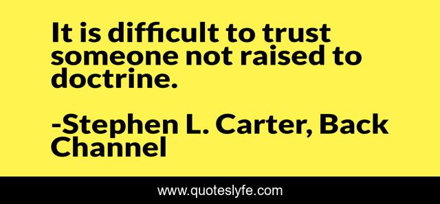 This page presents the quote "It is difficult to trust someone not raised to doctrine.". Author of this quote is Stephen L. Carter, Back Channel. This quote is about values, belief, community,.