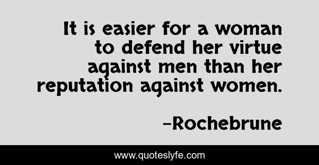 This page presents the quote "It is easier for a woman to defend her virtue against men than her reputation against women.". Author of this quote is Rochebrune. .