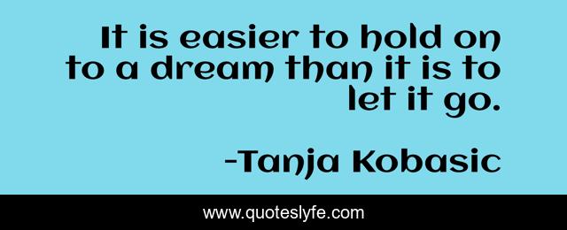 This page presents the quote "It is easier to hold on to a dream than it is to let it go.". Author of this quote is Tanja Kobasic. This quote is about faith, wishes, inspirational, positive-thoughts, enthusiasm, dreams,.