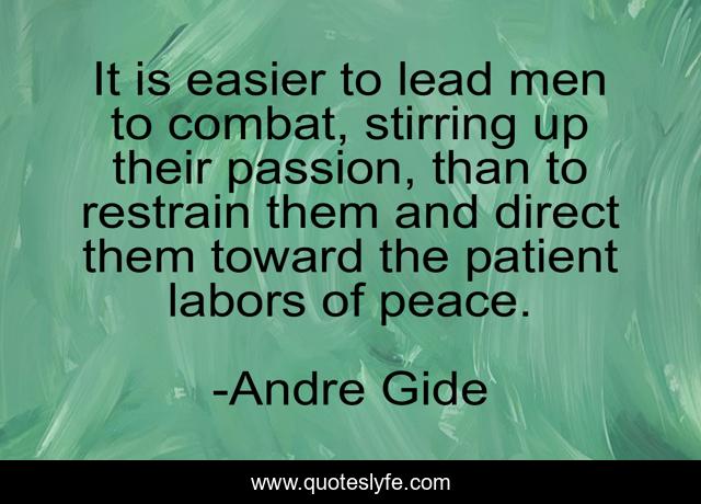 It is easier to lead men to combat, stirring up their passion, than to restrain them and direct them toward the patient labors of peace.