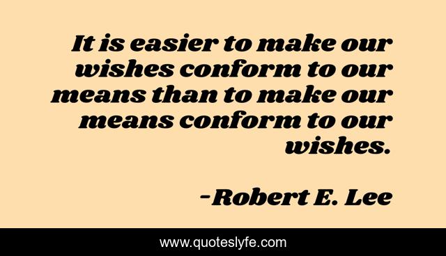 This page presents the quote "It is easier to make our wishes conform to our means than to make our means conform to our wishes.". Author of this quote is Robert E. Lee. This quote is about acceptance, expectations,.