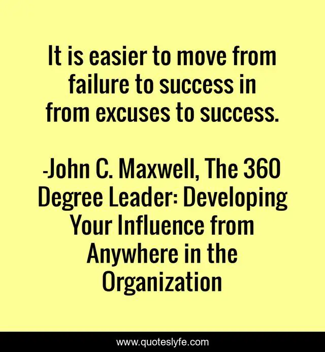 "John C. Maxwell, The 360 Degree Leader: Developing Your Influence from Anywhere in the Organization Quotes." Quoteslyfe.com, 2025. Fri. 05 Dec. 2025. <https://www.quoteslyfe.com/quote/It-is-easier-to-move-from-failure-179211>.