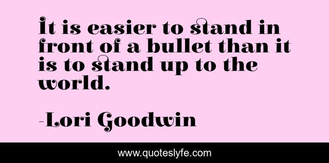 This page presents the quote "It is easier to stand in front of a bullet than it is to stand up to the world.". Author of this quote is Lori Goodwin. .