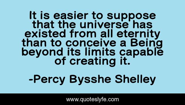 This page presents the quote "It is easier to suppose that the universe has existed from all eternity than to conceive a Being beyond its limits capable of creating it.". Author of this quote is Percy Bysshe Shelley. .