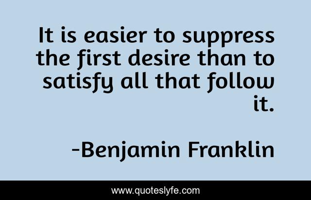 This page presents the quote "It is easier to suppress the first desire than to satisfy all that follow it.". Author of this quote is Benjamin Franklin. .