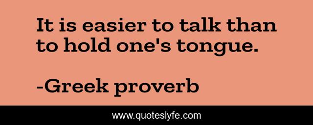 This page presents the quote "It is easier to talk than to hold one's tongue.". Author of this quote is Greek proverb. .
