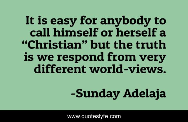 This page presents the quote "It is easy for anybody to call himself or herself a “Christian” but the truth is we respond from very different world-views.". Author of this quote is Sunday Adelaja. This quote is about respond, christian, truth,.