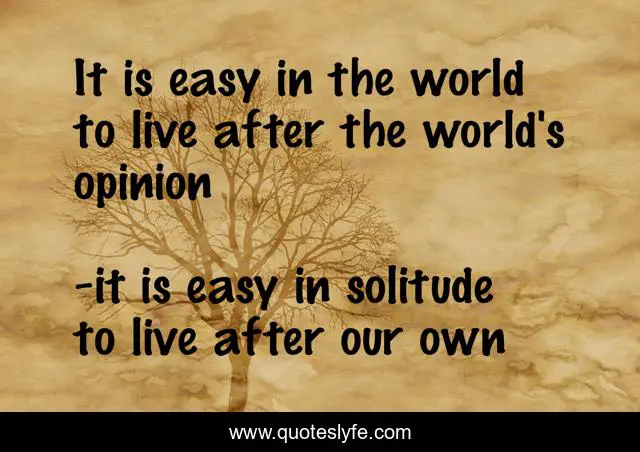 This page presents the quote "It is easy in the world to live after the world's opinion". Author of this quote is it is easy in solitude to live after our own. .