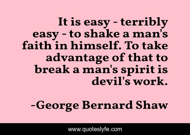 This page presents the quote "It is easy - terribly easy - to shake a man's faith in himself. To take advantage of that to break a man's spirit is devil's work.". Author of this quote is George Bernard Shaw. This quote is about critics, criticism,.