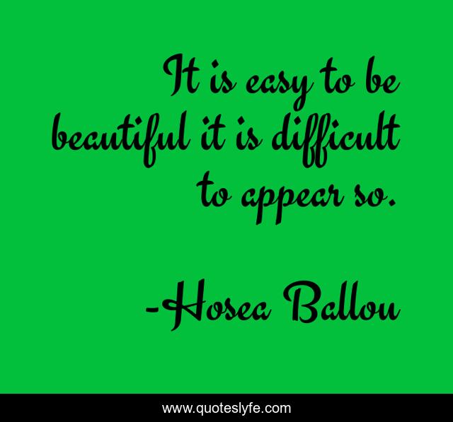This page presents the quote "It is easy to be beautiful it is difficult to appear so.". Author of this quote is Hosea Ballou. This quote is about beautiful, easy, difficult,.
