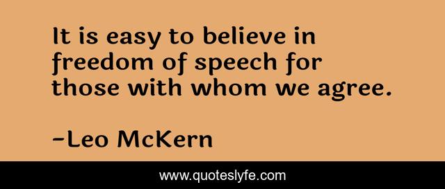 This page presents the quote "It is easy to believe in freedom of speech for those with whom we agree.". Author of this quote is Leo McKern. This quote is about believe, easy,.