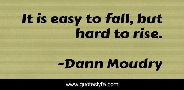 This page presents the quote "It is easy to fall, but hard to rise.". Author of this quote is Dann Moudry. This quote is about knowing, lessons-in-life, knowledge-wisdom, understanding, truth, falling, wisdom,.