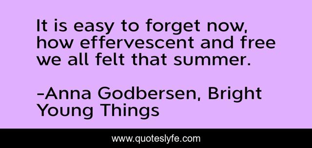 This page presents the quote "It is easy to forget now, how effervescent and free we all felt that summer.". Author of this quote is Anna Godbersen, Bright Young Things. This quote is about freedom, feelings, summer,.