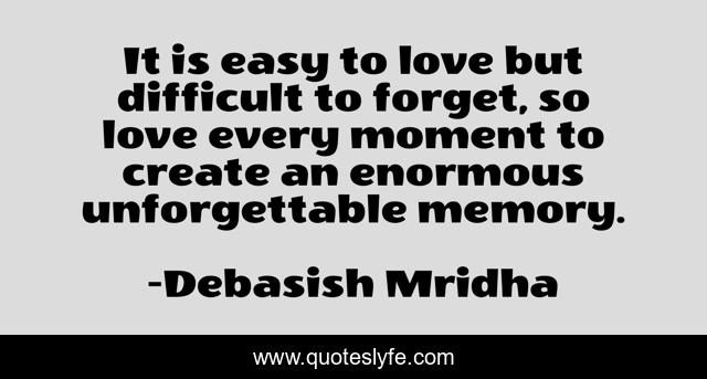 This page presents the quote "It is easy to love but difficult to forget, so love every moment to create an enormous unforgettable memory.". Author of this quote is Debasish Mridha. This quote is about life, love, knowledge, inspirational, intelligence, philosophy, wisdom, quotes, affection,.