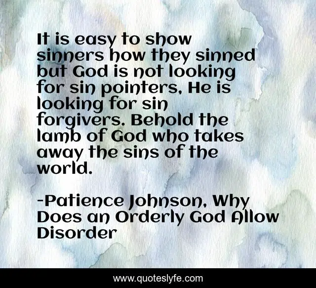 "Patience Johnson, Why Does an Orderly God Allow Disorder Quotes." Quoteslyfe.com, 2025. Sun. 07 Dec. 2025. <https://www.quoteslyfe.com/quote/It-is-easy-to-show-sinners-how-83440>.