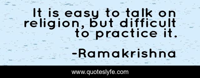This page presents the quote "It is easy to talk on religion, but difficult to practice it.". Author of this quote is Ramakrishna. This quote is about practice, easy, difficult,.
