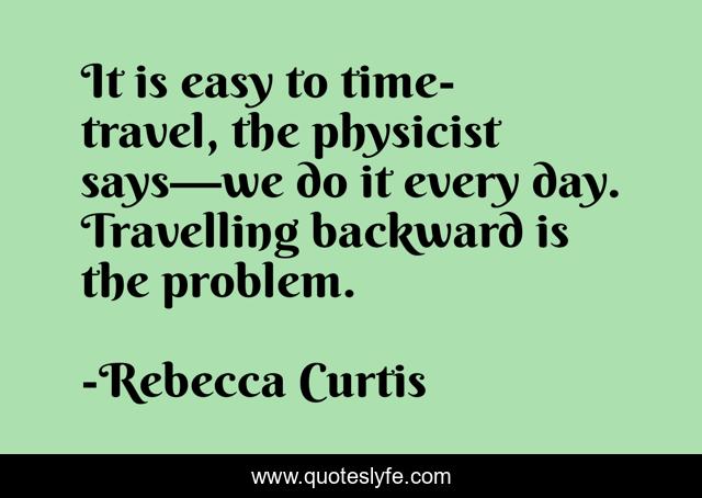 This page presents the quote "It is easy to time-travel, the physicist says—we do it every day. Travelling backward is the problem.". Author of this quote is Rebecca Curtis. .