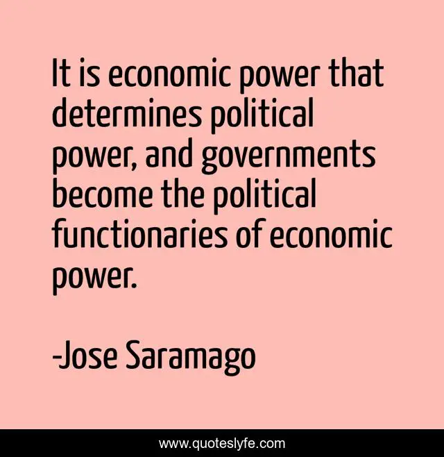 "Jose Saramago Quotes." Quoteslyfe.com, 2025. Mon. 08 Dec. 2025. <https://www.quoteslyfe.com/quote/It-is-economic-power-that-determines-political-305265>.