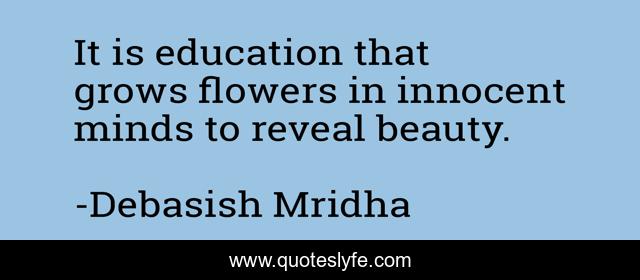 This page presents the quote "It is education that grows flowers in innocent minds to reveal beauty.". Author of this quote is Debasish Mridha. This quote is about mridha, flowers, education, debasish-mridha, beauty,.