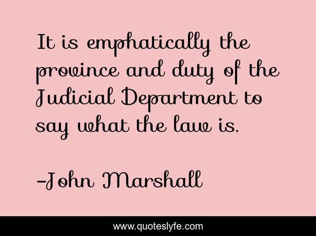 This page presents the quote "It is emphatically the province and duty of the Judicial Department to say what the law is.". Author of this quote is John Marshall. .