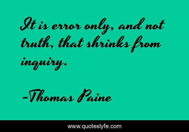 This page presents the quote "It is error only, and not truth, that shrinks from inquiry.". Author of this quote is Thomas Paine. .
