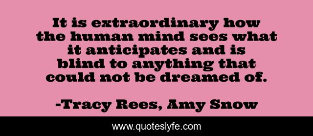 This page presents the quote "It is extraordinary how the human mind sees what it anticipates and is blind to anything that could not be dreamed of.". Author of this quote is Tracy Rees, Amy Snow. This quote is about imagination, human-mind,.