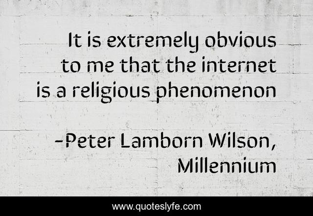 This page presents the quote "It is extremely obvious to me that the internet is a religious phenomenon". Author of this quote is Peter Lamborn Wilson, Millennium. This quote is about religion, internet,.