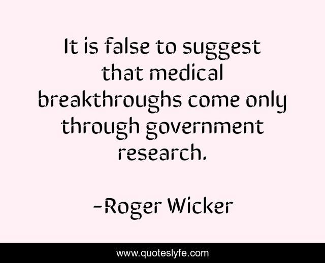 This page presents the quote "It is false to suggest that medical breakthroughs come only through government research.". Author of this quote is Roger Wicker. This quote is about government, research,.