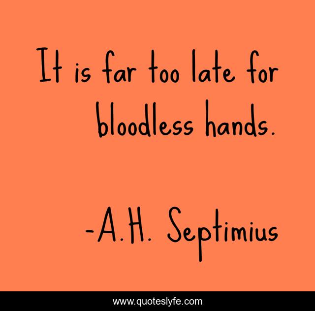 This page presents the quote "It is far too late for bloodless hands.". Author of this quote is A.H. Septimius. This quote is about society, life, pain, truth, crime,.