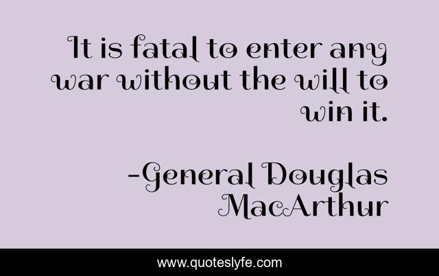 This page presents the quote "It is fatal to enter any war without the will to win it.". Author of this quote is General Douglas MacArthur. .