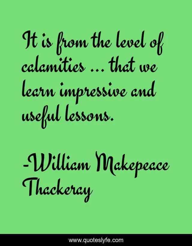 This page presents the quote "It is from the level of calamities ... that we learn impressive and useful lessons.". Author of this quote is William Makepeace Thackeray. .