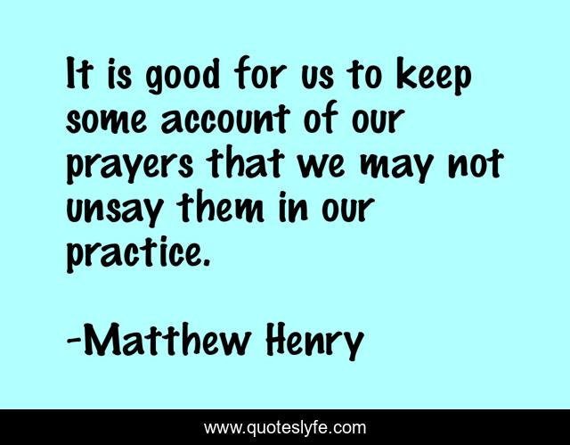 This page presents the quote "It is good for us to keep some account of our prayers that we may not unsay them in our practice.". Author of this quote is Matthew Henry. .